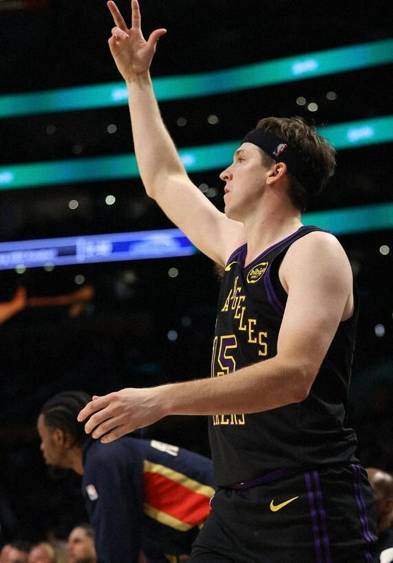 第三节中段湖人陷入得分荒,鹈鹕队一波11-1的攻势过后,67-64反超湖人队3分。里夫斯和东契奇连拿6分,帮助湖人再次取得领先。但此后鹈鹕打出8-0的攻势,重新取得优势。三节比赛结束时,两队76-76不相上下。
